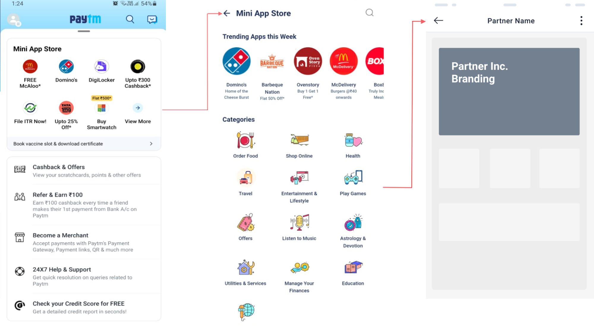 - User scrolls to the Mini App Store section on the Paytm app, and finds your app listed in relevant categories.
