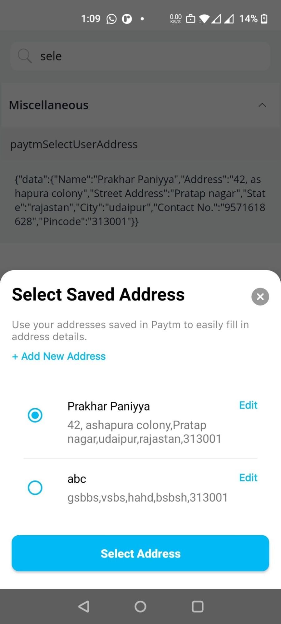 Your users no longer have to fill in their addresses manually. Improve the overall checkout experience by using the paytmSelectUserAddress API, and autofill the delivery /shipping address fields with user addresses that are saved with Paytm