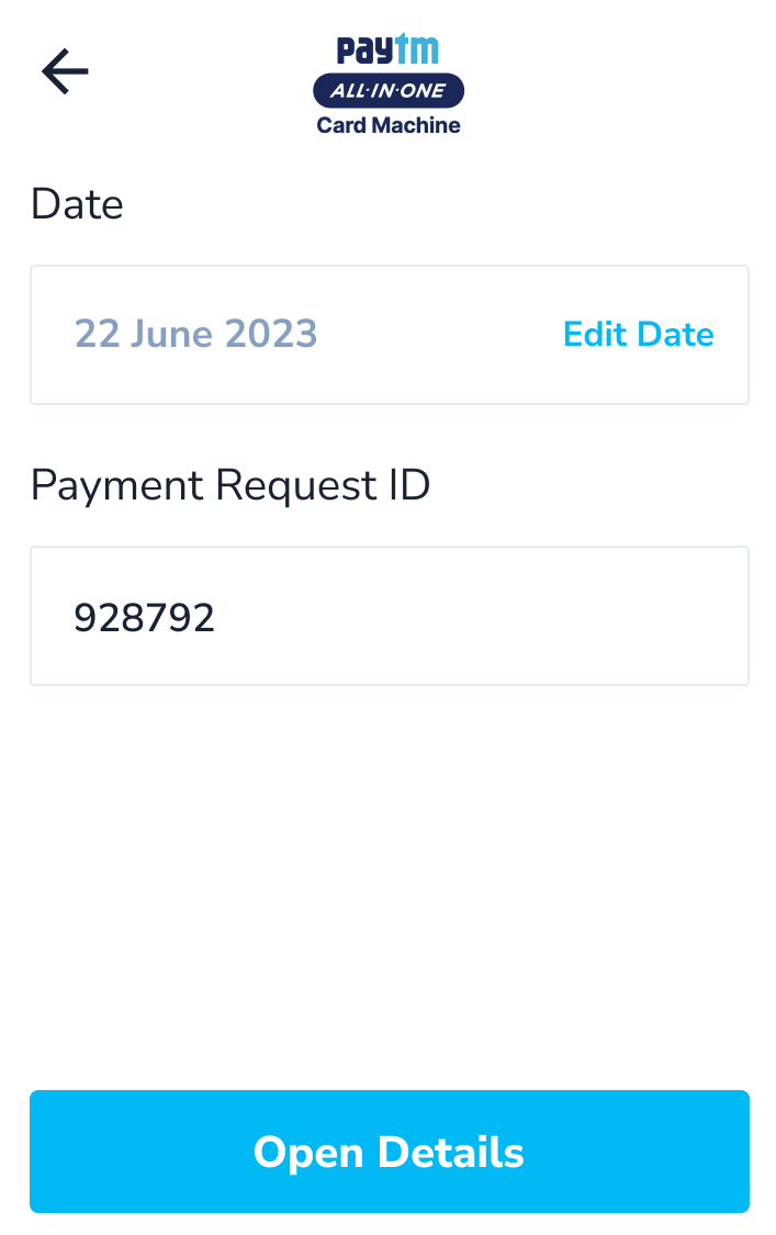 - Once successfully fetched, the merchant can use the Paytm POS machine to collect the payment for that Payment Request ID (CPay) and complete the transaction.